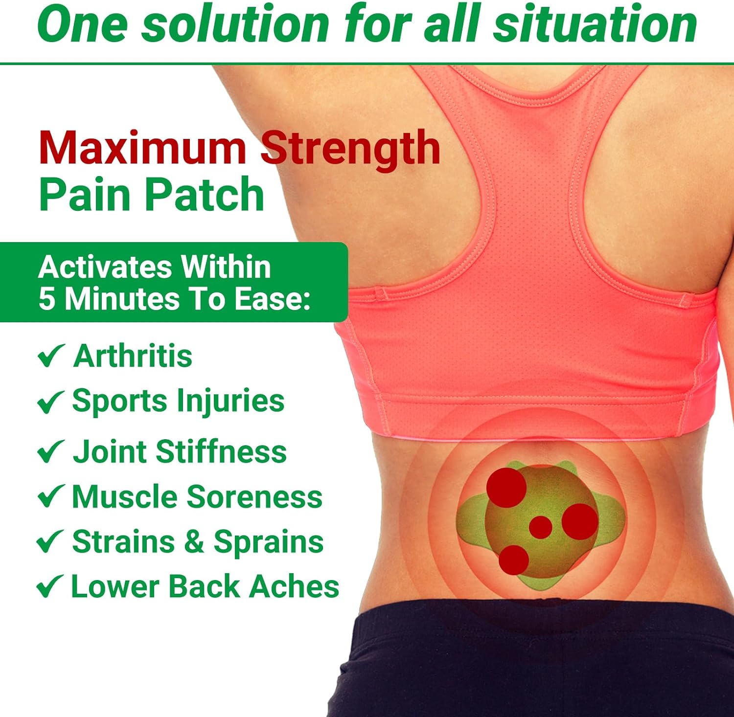 🌿 Takes effect quickly and claims to last up to a specified duration, providing continuous comfort for back-related discomfort. These patches are said to potentially assist with arthritis, joint stiffness, sports injuries, muscle soreness, strains, and sprains.
