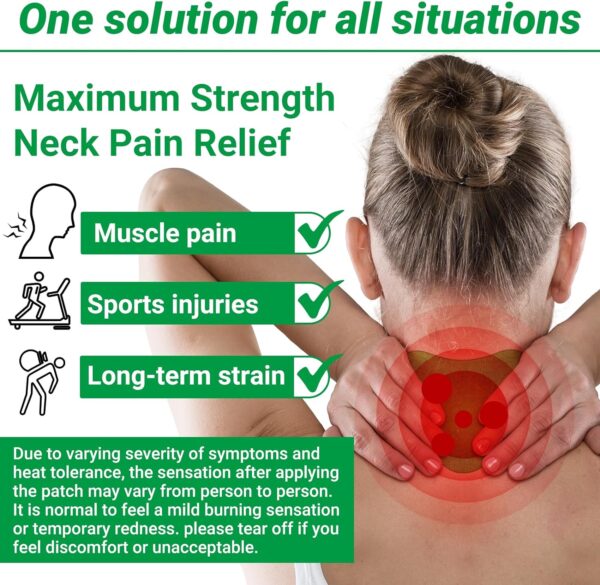 🌿 Simply clean the affected skin with warm water and dry, remove the protective film, and apply the neck patch to the specified area. Claimed to remain stable and work quickly. Suggested use is one during the day and one before bedtime for potentially better effects.